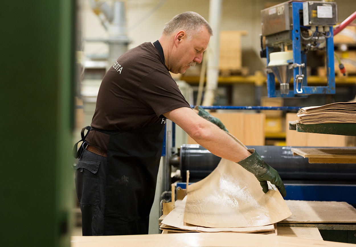I skjæringspunktet mellom avansert industriproduksjon og småskala håndverksproduksjon lages møblene våre. Under nøye tilsyn av formann Jonny forvandler våre dyktige ansatte stål, tre, tekstil og skinn til UNIKE møbler med kompetanse og lidenskap. Det har de gjort i mer enn 40 år. Lenge før vår reise begynte.