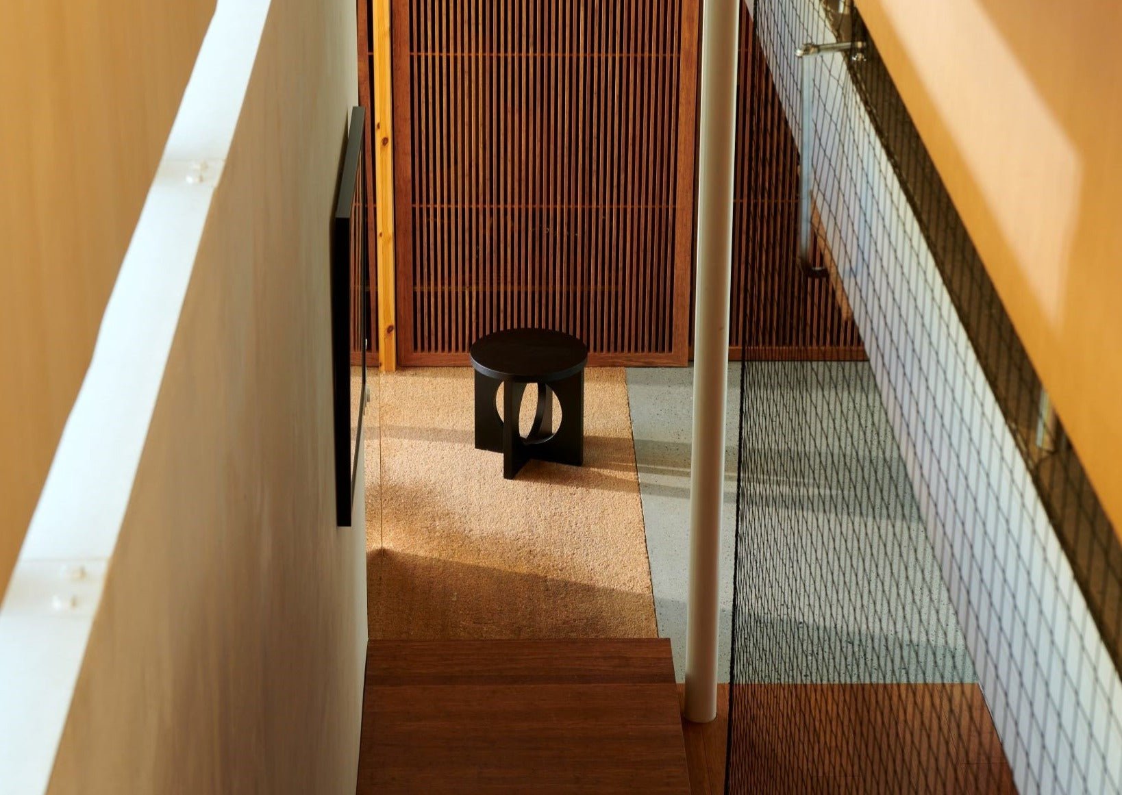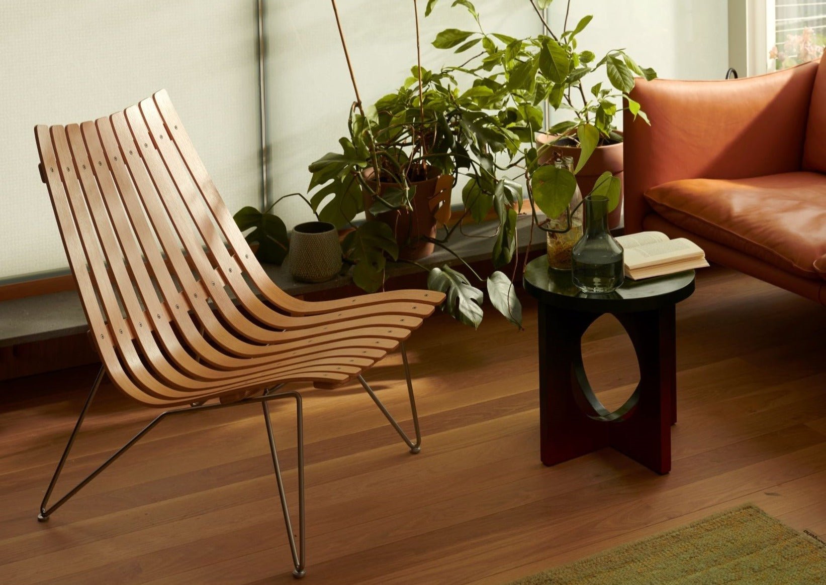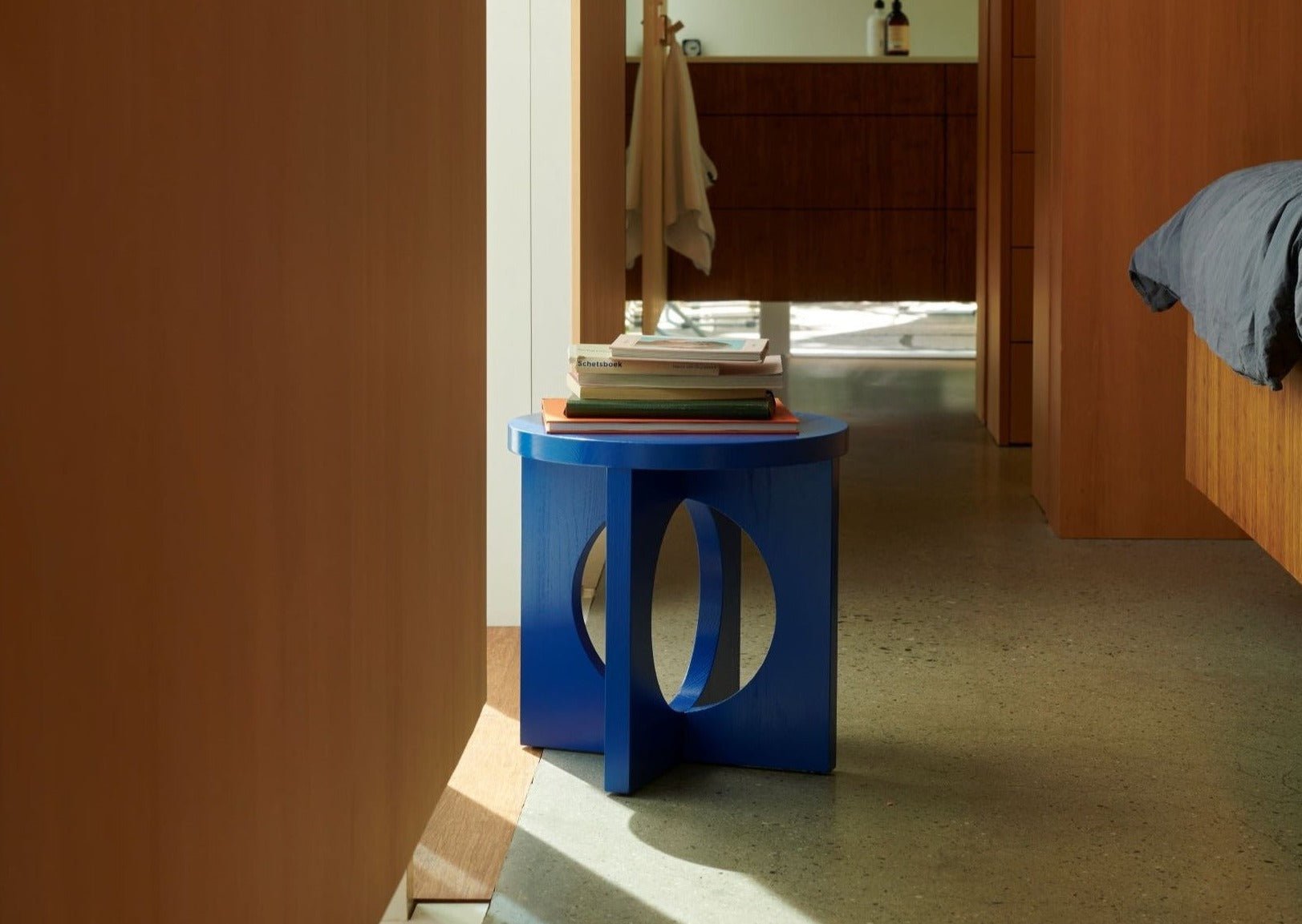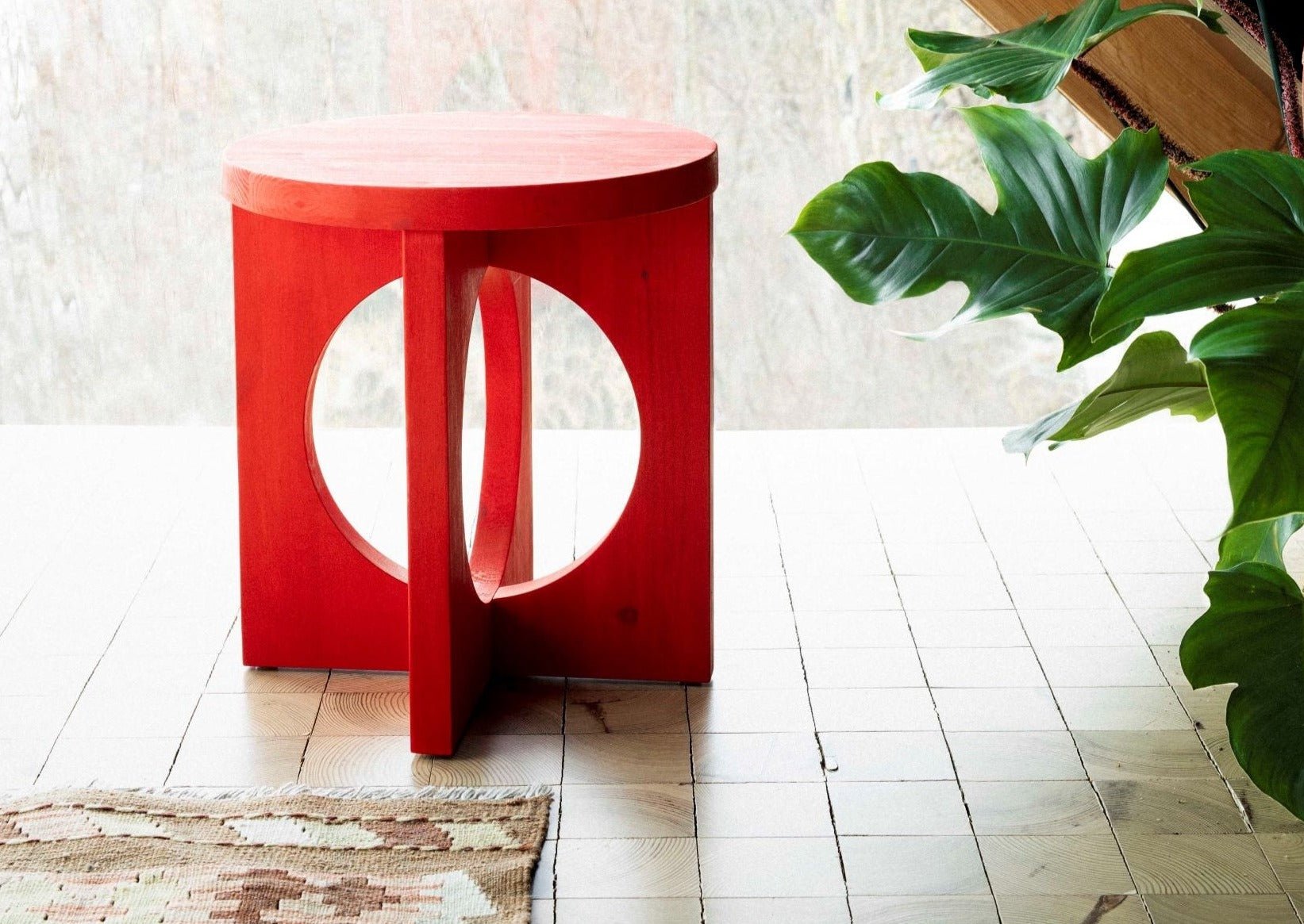 Ensfarget taburett med flere bruksområder laget i heltre ask.