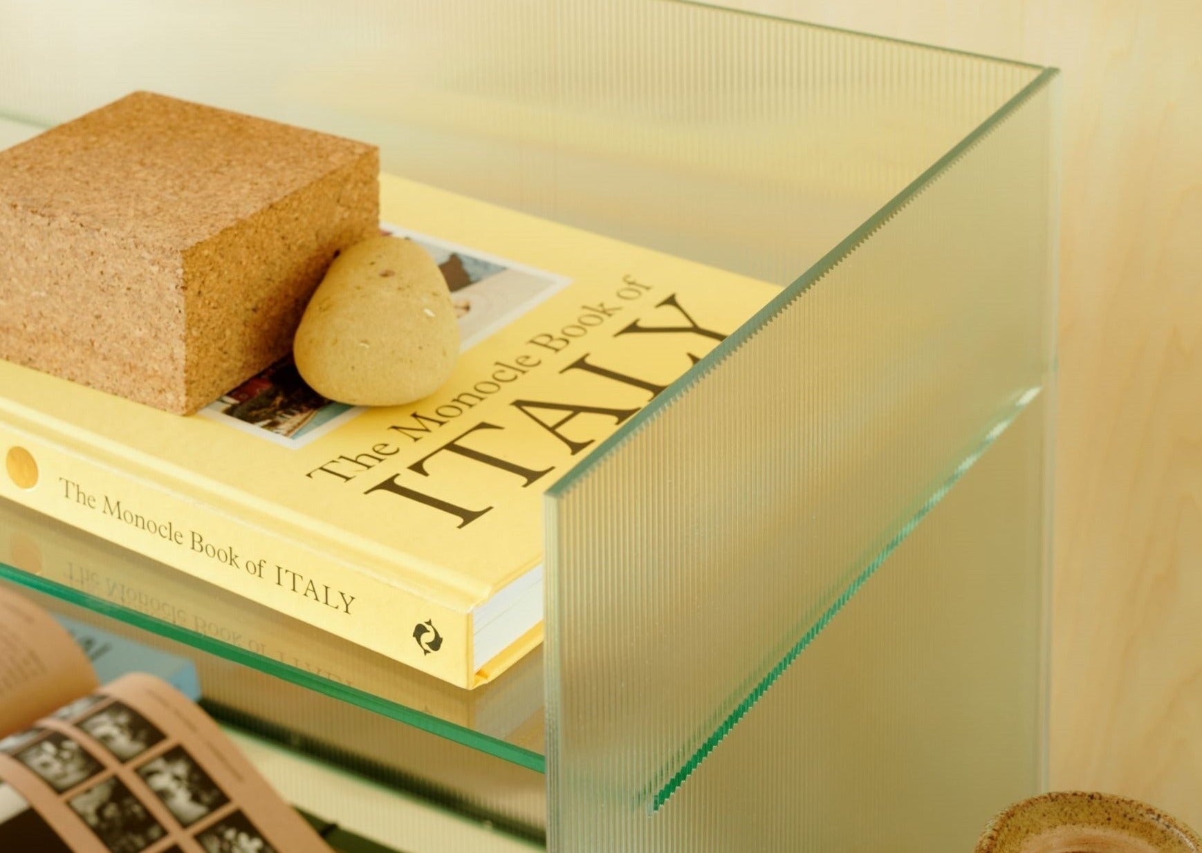 Transparent glasshylle tilpasset Krobobenken for oppbevaring eller fremvisning.