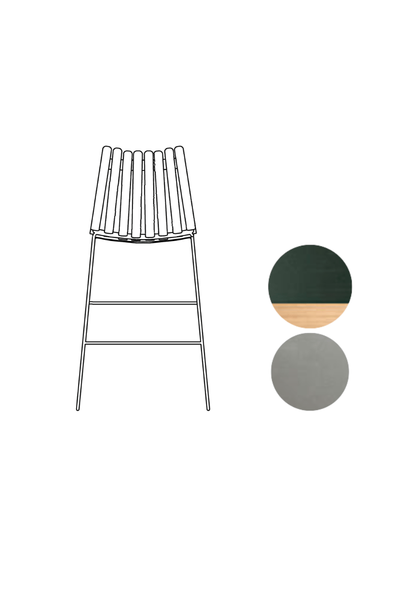 Barstol i formpresset eik, farget eik eller valnøtt. Satin krom understell.